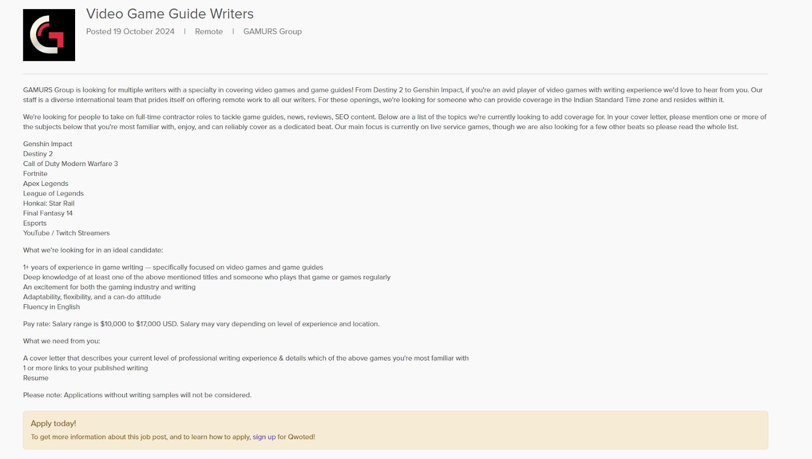 I mean, look at what one of the largest Games Media orgs is paying people for FULL TIME (10-17k/yr). This is disgusting. TechRaptor pays 3-4x this for our lowest paying roles, even while at 1/10th of the traffic of Gamurs websites.