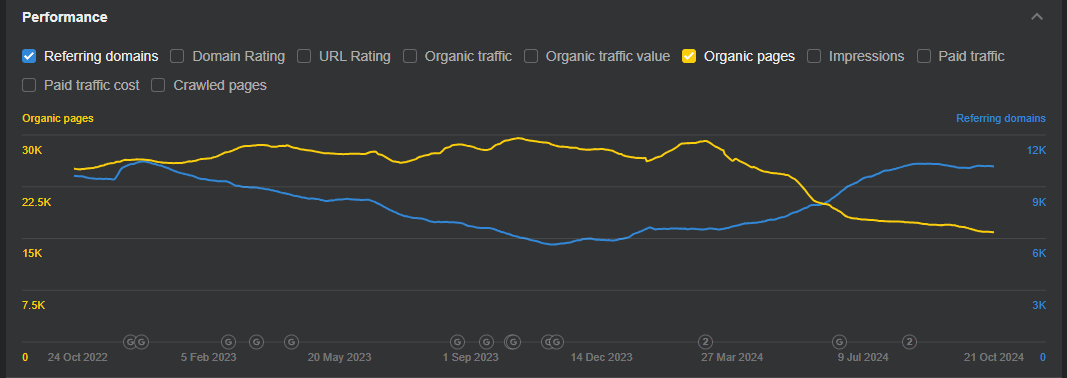 - August 2024 – Core Update – No change until the last day, then another 40% loss.